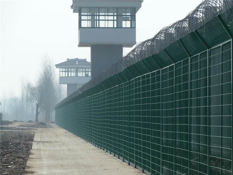監(jiān)獄護(hù)欄網(wǎng)現(xiàn)被廣泛應(yīng)用在監(jiān)獄,軍事基地等高安全場(chǎng)所。注:如果在監(jiān)獄護(hù)欄網(wǎng)頂部加裝刀片刺絲、刀片刺繩后又很好的增強(qiáng)了安全防護(hù)性能。采用電鍍、熱鍍、噴塑、浸塑等防腐形式,具有很好的抗老化、抗曬、耐候等特點(diǎn)。其產(chǎn)品造型美觀、花色多樣,既起到圍欄作用,又起到美化作用。由于具有安全性高、防攀爬能力好,網(wǎng)片連接方式采用SBS緊扣件,有效防止人為的破壞性拆卸,橫向四道折彎加強(qiáng)筋,使網(wǎng)面強(qiáng)度大大增加。